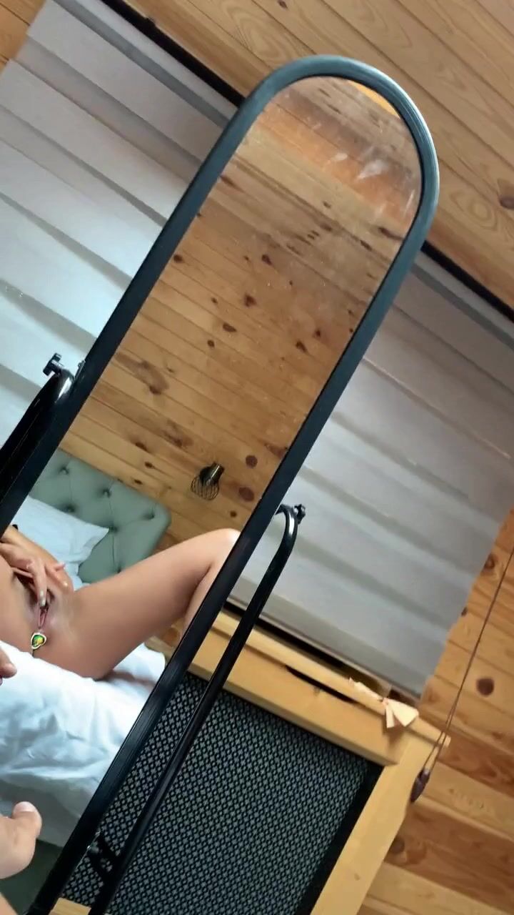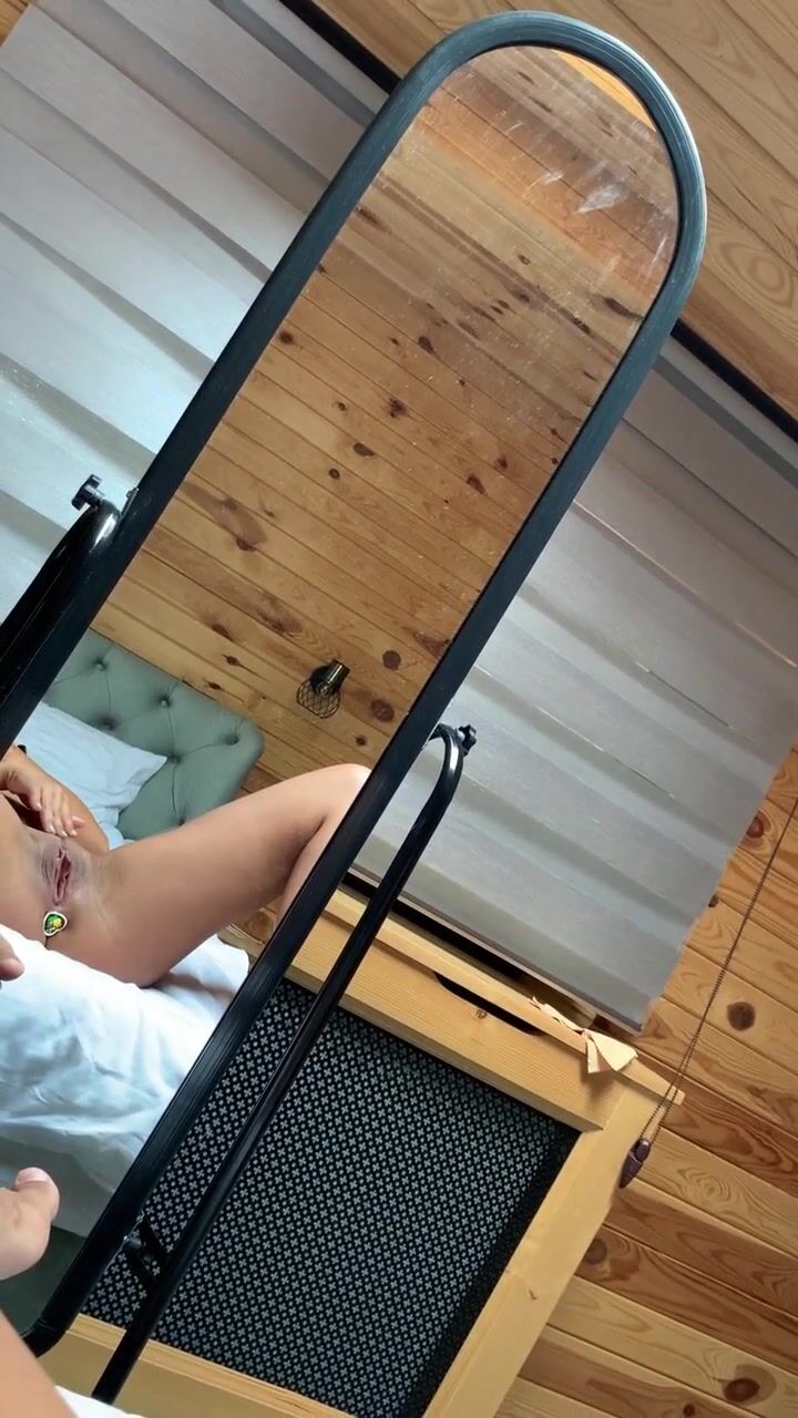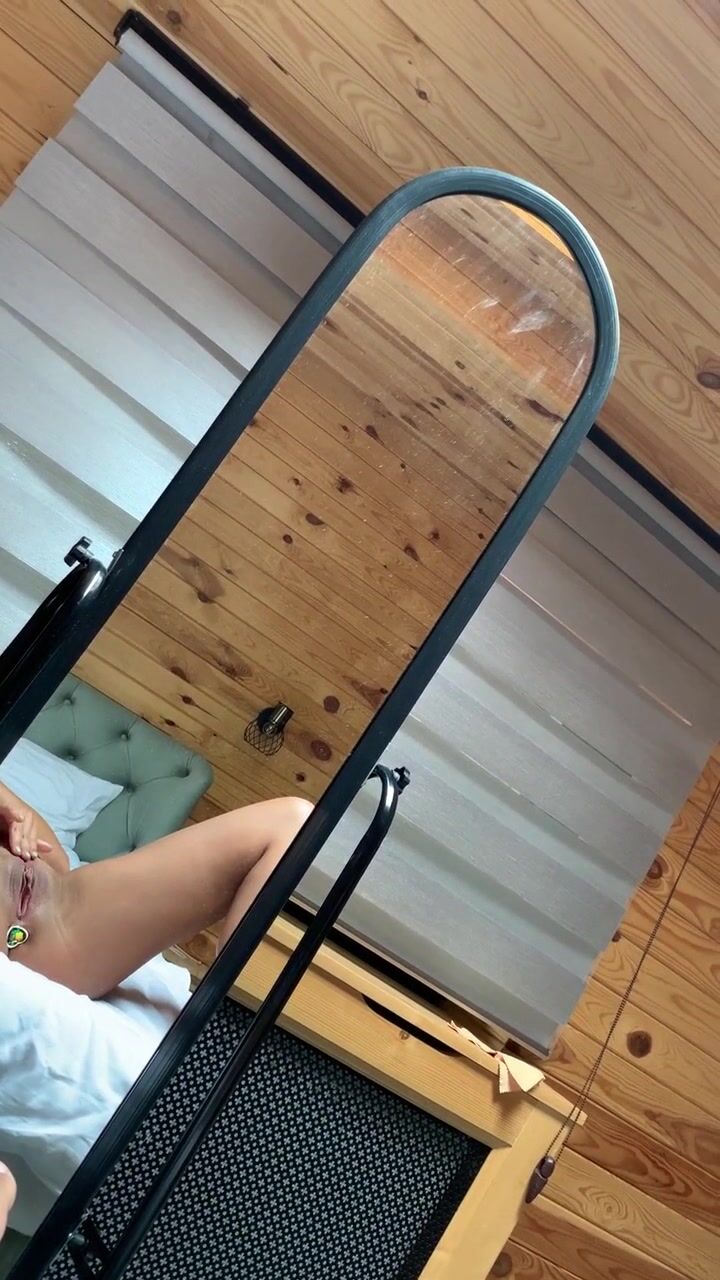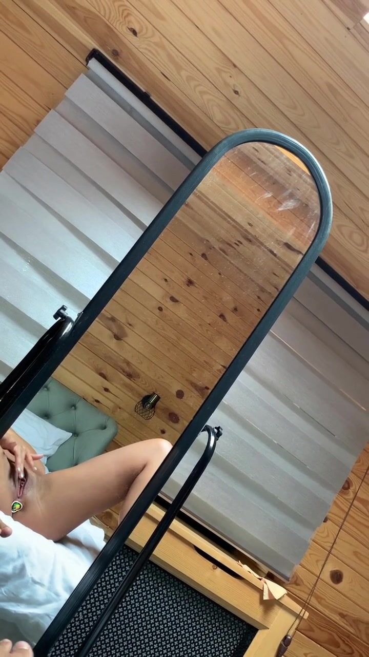 Studentessa si riprende masturbandosi allo specchio con dildo in culo