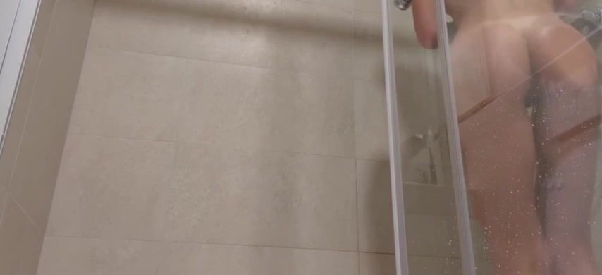 Eccitato nel vederla in doccia entra la scopa e glielo infila tutto nel culo